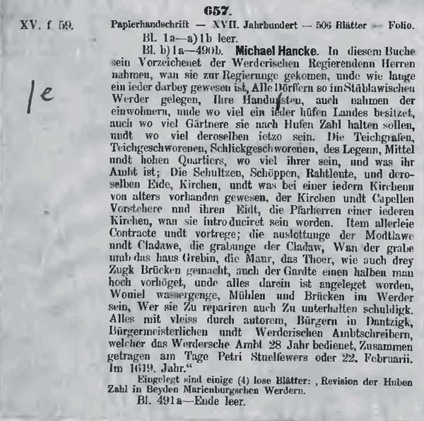 Danziger Werders mit abgeschriebenen Gründungsurkunden,