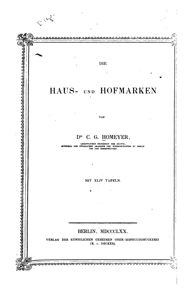 Download des gesamten Buches : Homeyer, Carl Gustav: Die Haus- und Hofmarken, Berlin 1870 (pdf)