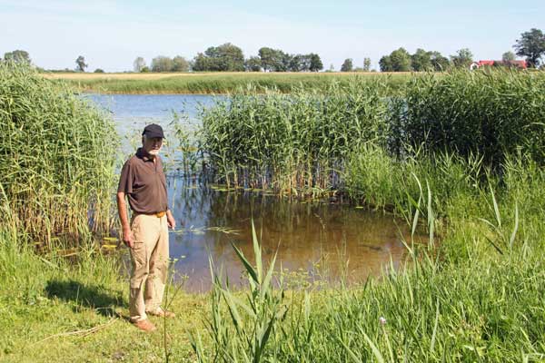 Seerosen an den Rändern. Niedrige Deiche hielten den Blick auf