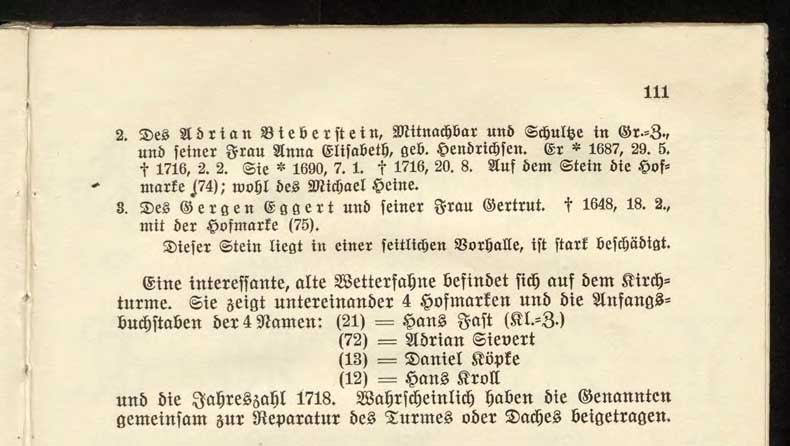Namen ist laut der Zeichnung der Wetterfahne - siehe Zirkwitz, S. 40