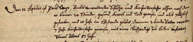 drauf gleich krank, stirbt auch 1. oder 2. tag darnach und ward d. 27.