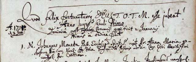 2. Heirat von Johann Moneta (I) am 02.01.1701 in der St Johannis