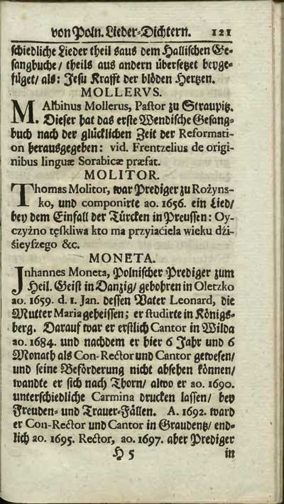 117, 119 und 133 über den "deutsch-polnischen Prediger" Johann