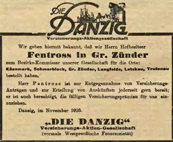 Adressbuch Danzig - Land 1927/28: Groß Zünder