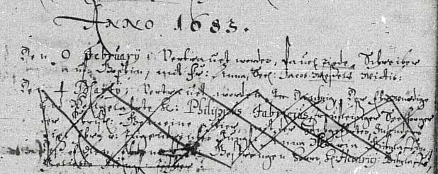 13.02.1684 Auch dieser Eintrag ist kreuzweise
