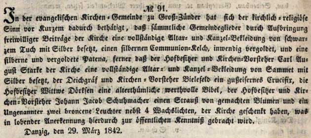 Pfarrer von 1815 - 1833 * Danzig, St. Marien 27.09.1778
