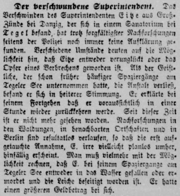 Zünder, der nach Danzig - Langfuhr verzogen war, aus dem