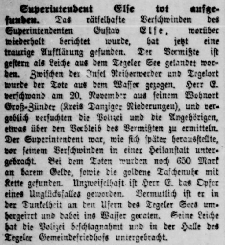 GrZ, "in Tegel im See bei Berlin ertrunken"