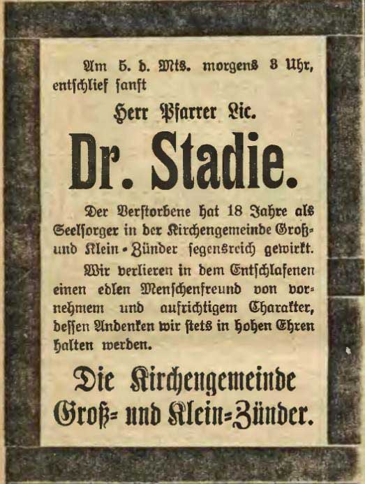 Letzte Lebenszeit von Pfarrer Lic. Dr. Stadie Die Krankeit, von der Bruder Lic. Dr. Stadie in seinen