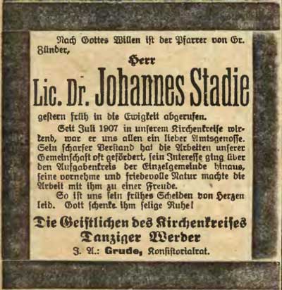 3. Elisabeth Stadie, Thorn, † Kiel 12.03.1972 7) Eva, *
