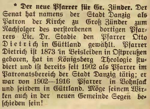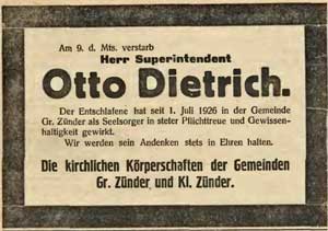 1927/28 Adressbuch: Groß Zünder: Dietrich, Otto, Pfarrer