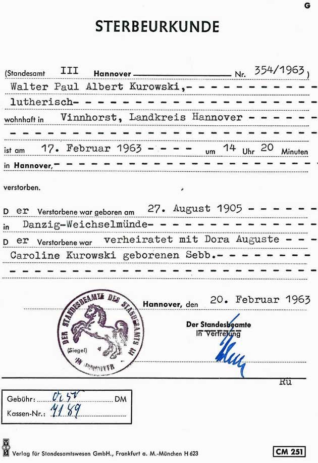 1941 - 1945 * Weichselmünde 27.08.1905, †