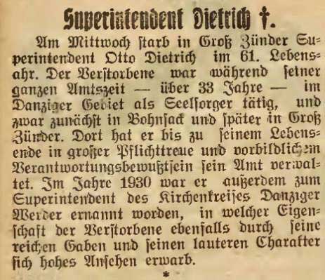 DIETRICH, Superintendent des Kirchenkreises Danziger Werder