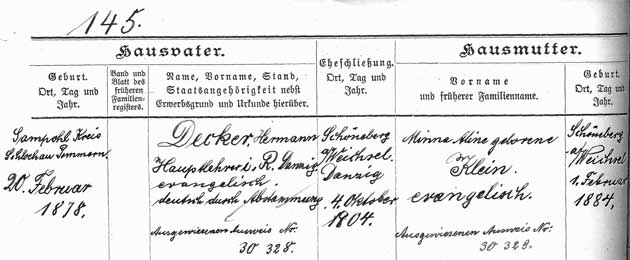 20.02.1878, 1945 Hauptlehrer in Ruhestand in Danzig,