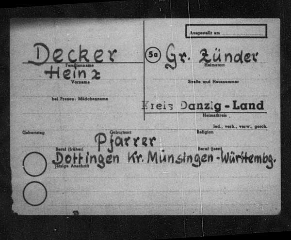 Lebenslauf von Pfarrer Heinz Decker lt. Landeskirchlichen