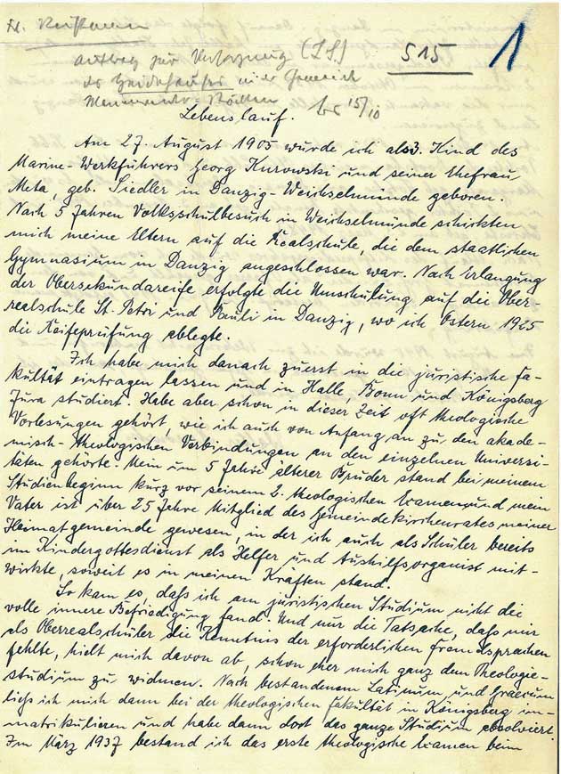und Studium der Thelogie in Königsberg, März 1937 1.