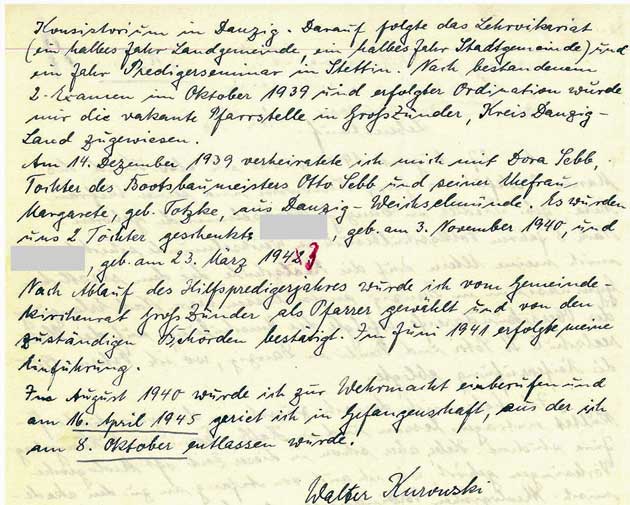 Lebenslauf: Ab 1947 Pfarrer in Vinnhorst, Lkr. Hannover. Seine Ehefrau und die beiden Töchter befinden sich nach der