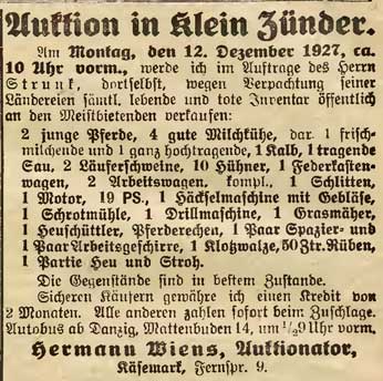 Hofbesitzers Herm. Strunk aus Kl. Zünder, ist im Alter von