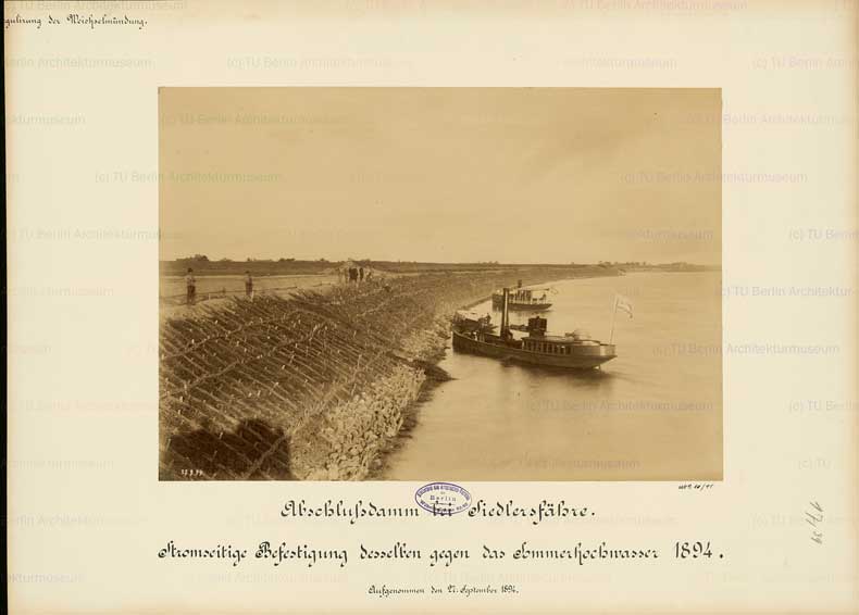 Abschlussdamm bei Siedlersfähre, Stromseitige Befestigung gegen das Sommerhochwasser (27.