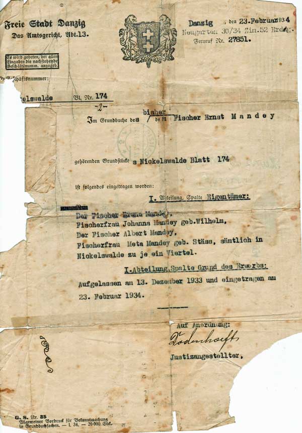 1933/34 zur Aufteilung des Grundstücks zwischen den Fischern Bruno und