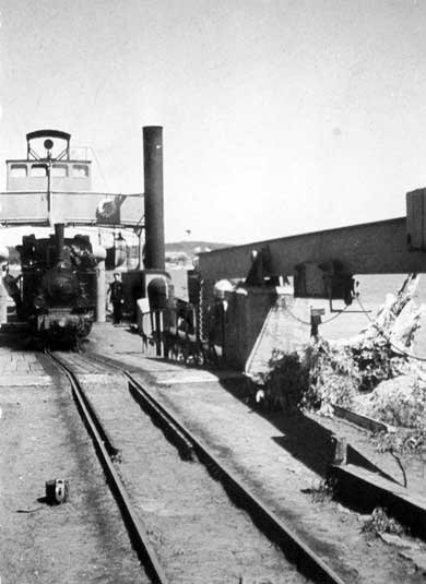Photo von 1942. Auf die Dampffähre für die Kleinbahn wurden nur die Lok