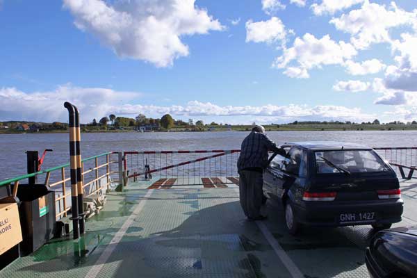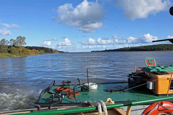 mit der Schiewenhorster Dampffähre oder der Dampffähre für die Kleinbahn.