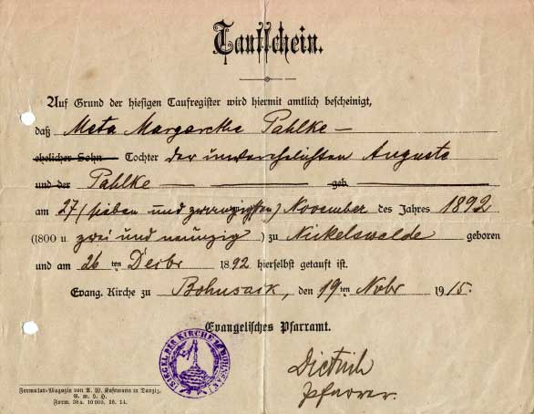Nickelswalde, 1892 - 1919, mit Meta Margarete Pahlke.