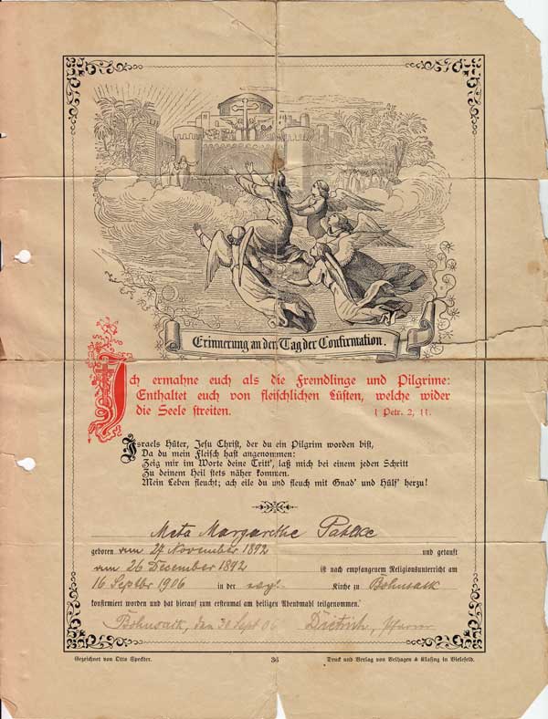 der Meta Margarete Pahlke, ab 1916 verheiratete Malgadey.