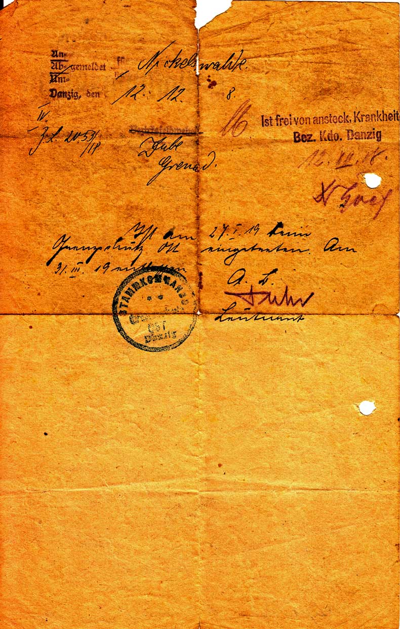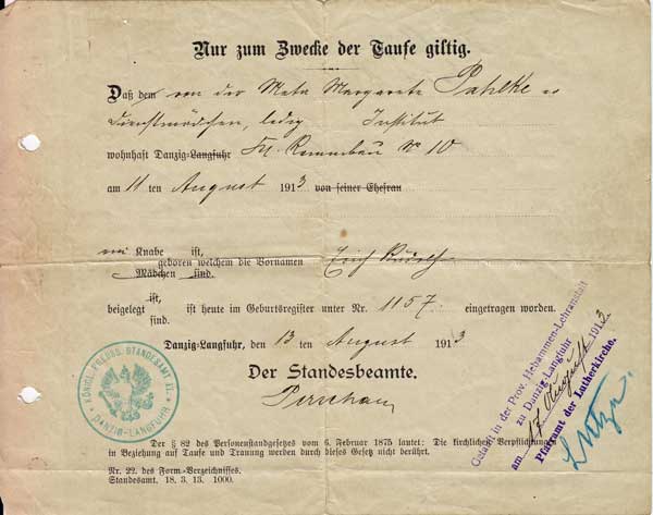von 1913 aus Danzig-Langfuhr für Sohn Erich
