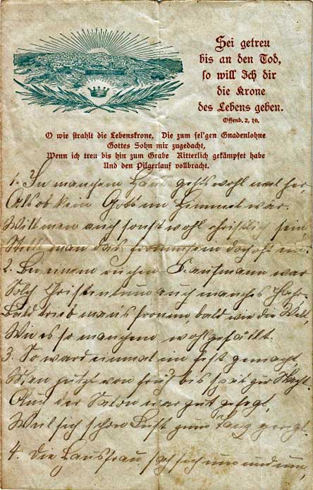 unbekannt, aber vermutlich vor 1918. Die Lebenskrone erinnert an die