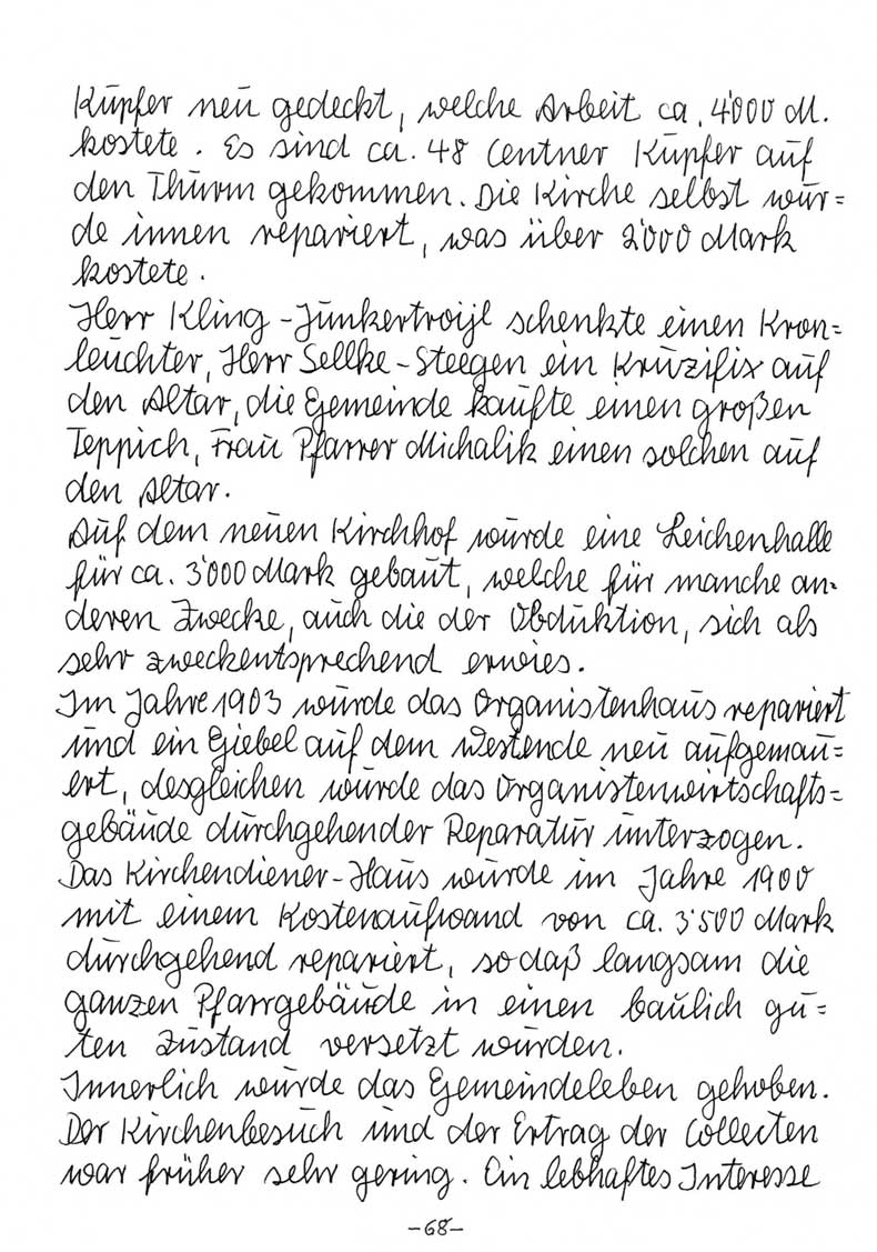 Chronik der Kirche von Kobbelgrube - Steegen / Stegna- Anno 1650 bis 1849 und 1889 bis 1940