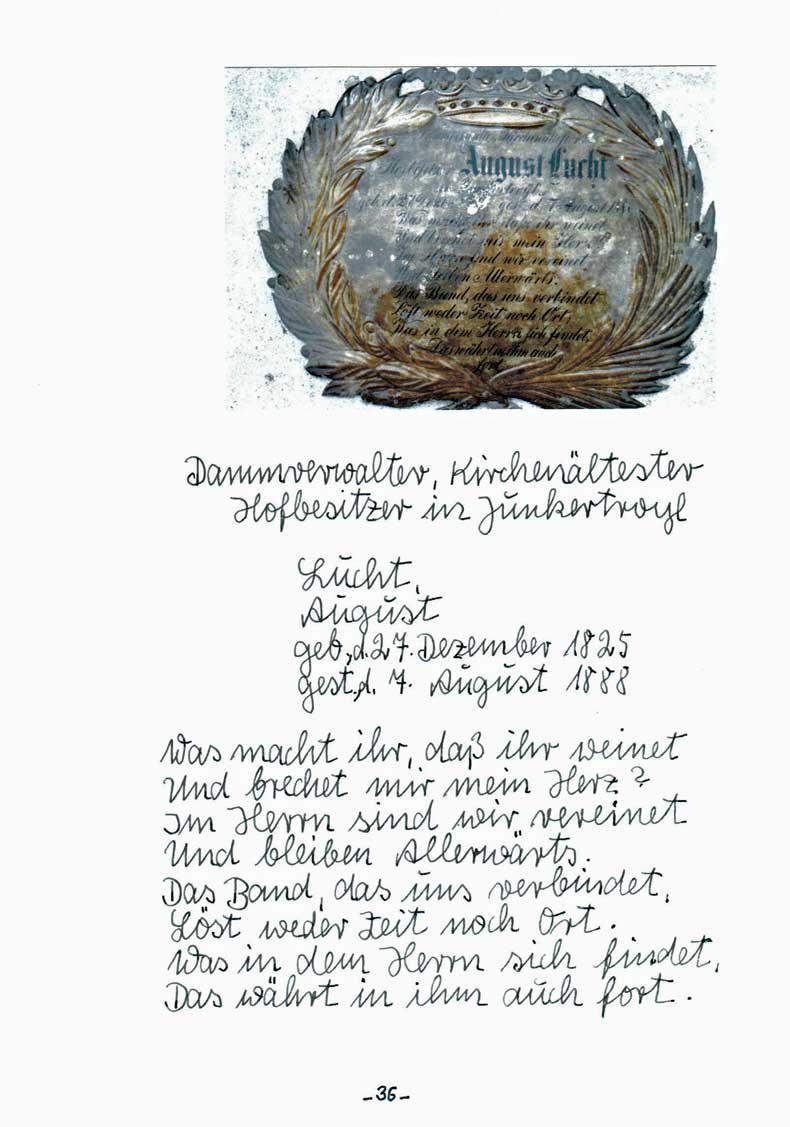 Das Sargschild des Kirchenältesten August Lucht. Mehr zu den in der Steegener Kirche gefundenen Sargschildern.