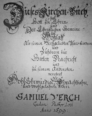 Pastor Samuel Verch - die Handschrift und die Form der Einträge sind von