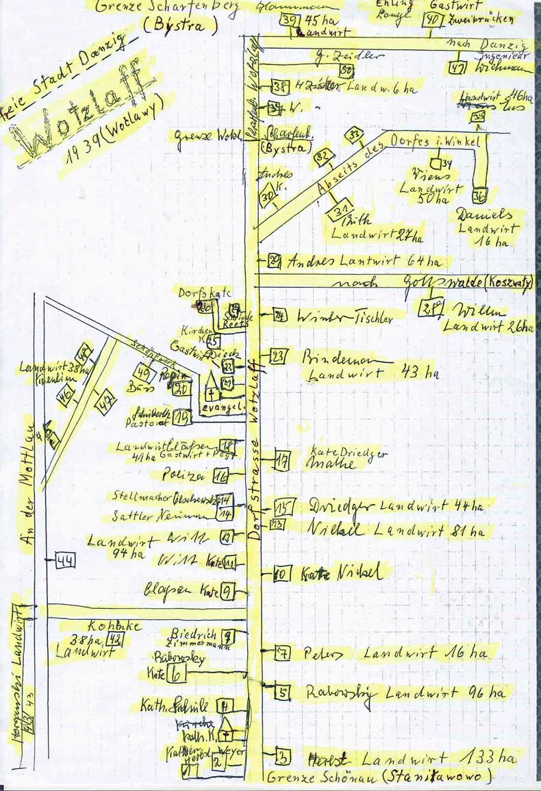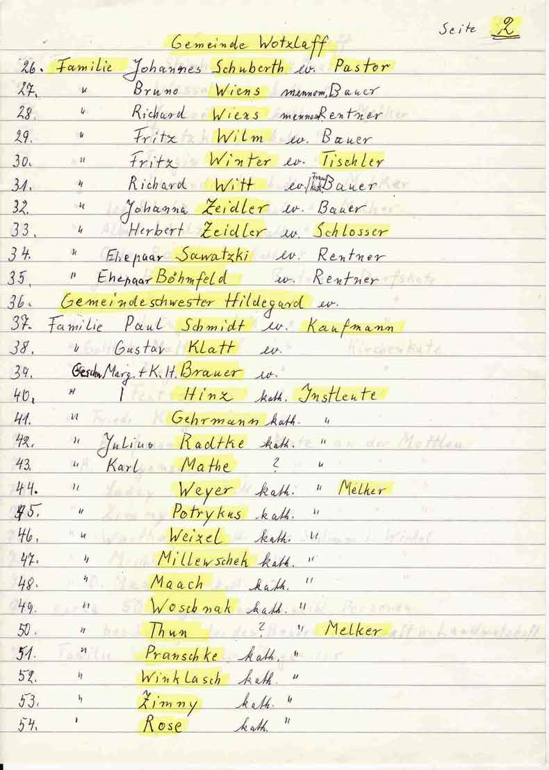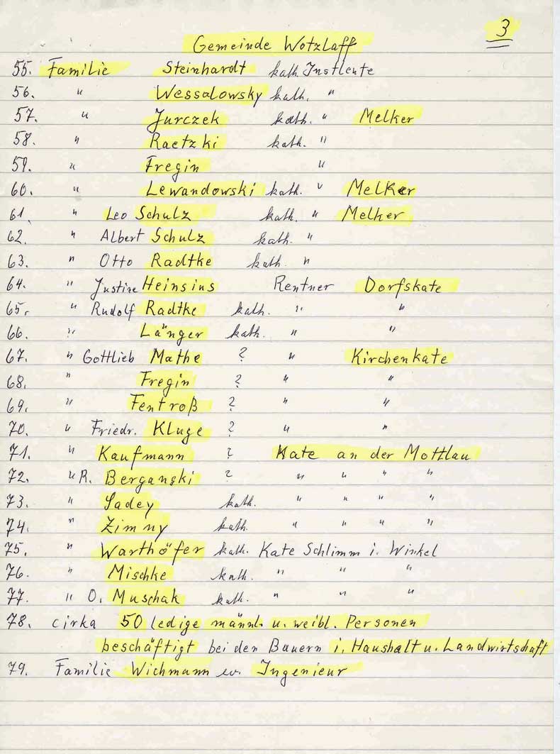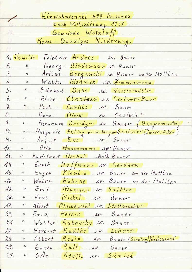 vervollständigte Liste der Einwohner von Wotzlaff ein:
