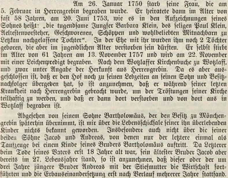 * Sperlingsdorf 19.10.1696, † Herrengrebin 22.11.1757