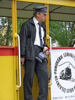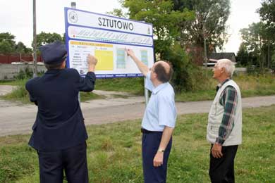 Łukasz freundliche Mitarbeiter zeigen uns, wie man die Pumpe