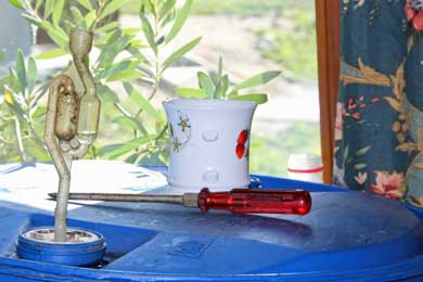 Unten rechts: Utensilien des Schnapsbrenners. |