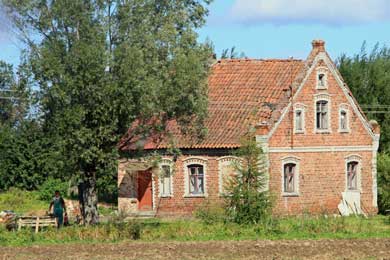 Das Haus rechts steht etwa auf der Mitte der Kampe,
