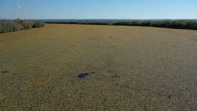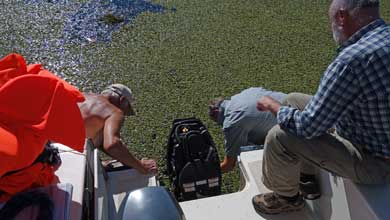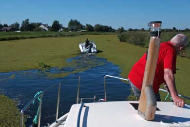 Das Boot liegt ruhig im grünen Wasserfarnbrei. Wir dösen vor uns hin.