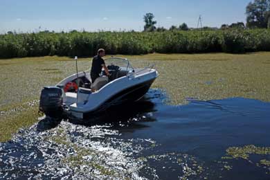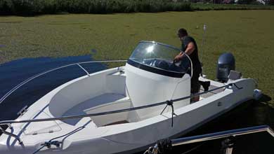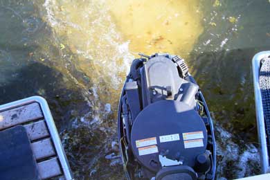 auf der linken Seite des Motors - vom Boot aus gesehen - bei dem