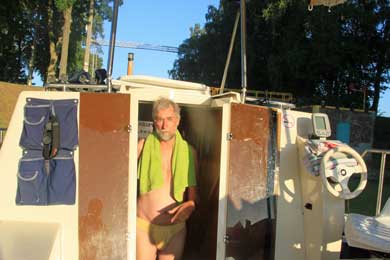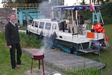 uns an dem wackeligen Steg häuslich ein und inspizieren im Abendlicht die Umgebung. Marten grübelt, welche Heldengeschichten er heute