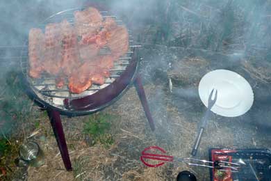 walten stoisch ihres Amtes: "Wurst und Kotelett, heute rosa, braun oder schwarz?"