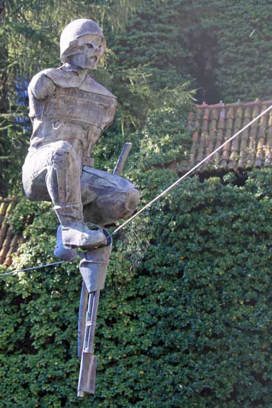 Wir überqueren die leicht schwingende Fußgängerbrücke,