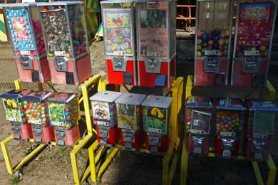 schleichen uns an den zahlreichen Ständen vorbei, bespickt mit billigem