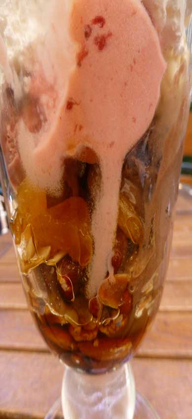 futtern. Wir klettern hinauf auf das Restaurantboot, treten in einen