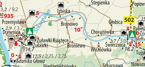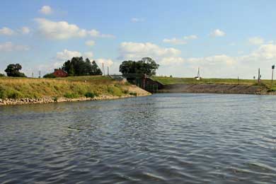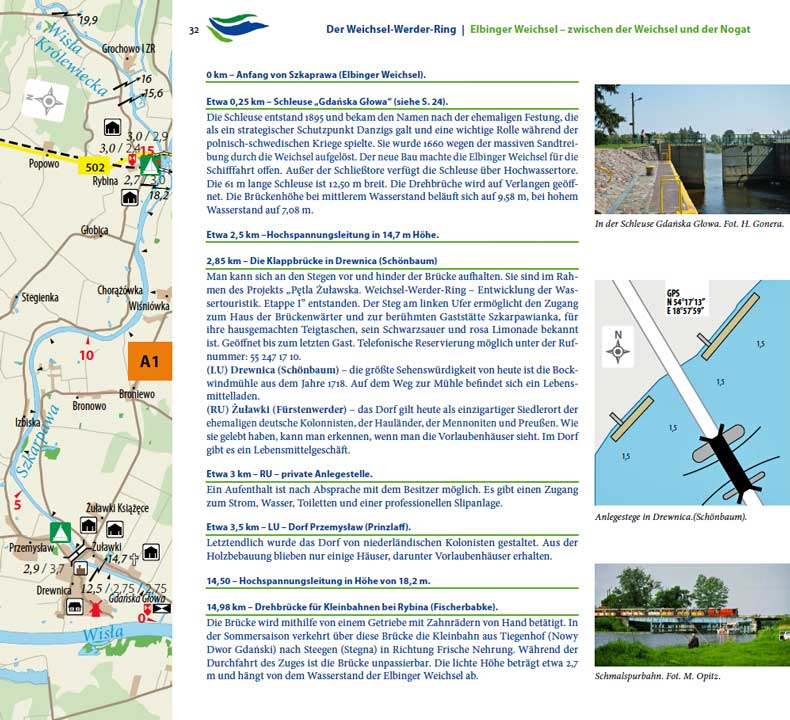fahren die gesamte Tote Weichsel zurück bis zur Schleuse in Einlage,