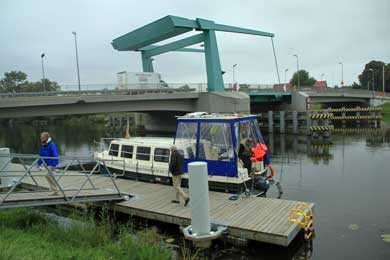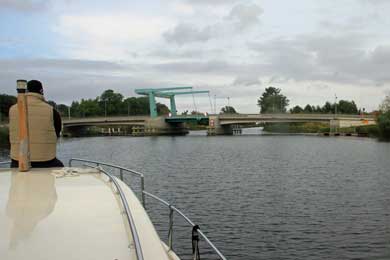 hochgeklappt werden muss ... der Brückenwärter gibt uns ein Handzeichen. Offensichtlich kennt er unseren Bootstyp bereits und weiß besser als