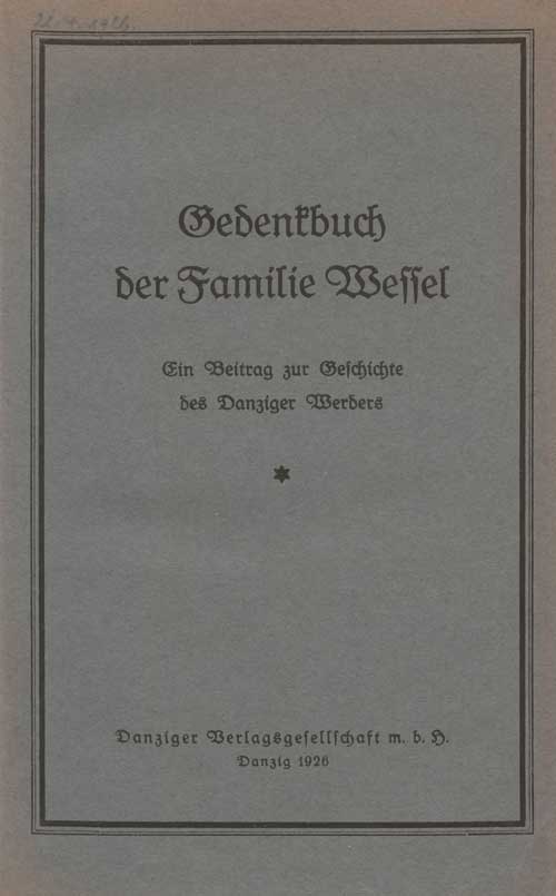 Wessel, Max Gedenkbuch der Familie Wessel, Ein Beitrag zur Geschichte des Danziger Werders Danzig 1926 DjVu-Version in der Elbinger Bibliothek